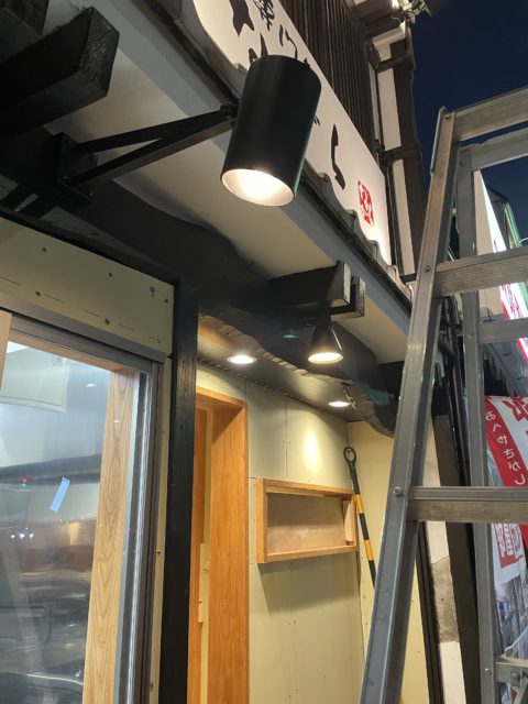 とんかつながら様にて、引き込み工事も終わり照明器具がついに点灯しました‼︎